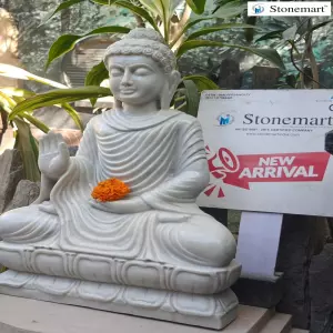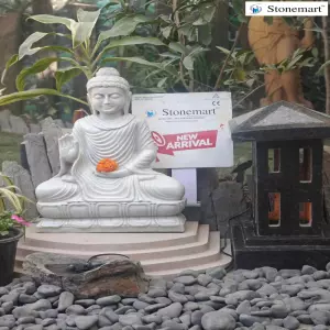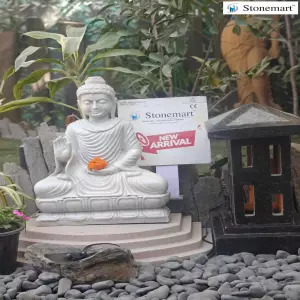 WATCH IT LIVE 👇:Ancient Buddha sculpture inspired Abhaya Mudra Buddha sculpture out of solid stone carved intricately by hands using hammer and chisel at Stonemart ™. It's 2 feet or 61 cm idol of Gautam Buddha for your console table, indoor and outdoor garden.