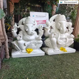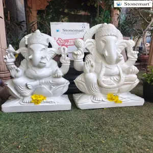 Fully carved by hand out of solid block of marble stone, Ganesha sculpture pair in 2 and 2.5 feet for your home and garden by Stonemart ™. The primary function of Bhagwan Ganesh is to clear obstacles (as Vighnaharta) from your life, allowing for success in various sorts personal and professional endeavors.