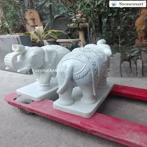 Each elephant comes with in-built pedestal (carved from the same stone) for grounding stability, height and additional visibility. If you may like, you can place the order for same type of elephant statues in black marble as well. Order your favorite stone elephant statue from Stonemart ™.