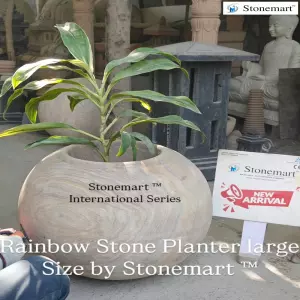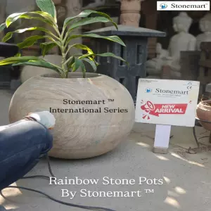 As you can see in the video shared above, polishing in progress to refine the stone surface of the luxury pot planter at Stonemart ™. Hand carved out of single block beautiful rainbow stone, the art of polishing not only offers a protective layer but also delivers a natural shine that embosses onto the surface when the water passes through the natural rainbow stone surface. Indeed, you will actually observe a change in the stone texture color when the same happens.