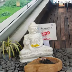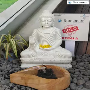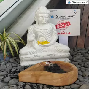 This 2 feet stone Buddha sculpture has been ordered by our client from Dubai, UAE and asked to be delivered to Alappuzha, Kerala from Stonemart ™. We recommend buying this blessing Buddha with stylish sandstone urli water feature as shown above. The unique sandstone (which is highly popular in the UK and rest of Europe) is known to bring change in its color when comes in contact with water.