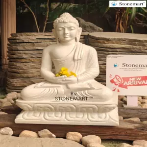 It's fully hand carved using a hammer and chisel with the exceptional calm face expressions. Just click the video shared by our team above and watch the craftsmanship accomplished over every inch of the white marble sculpture.