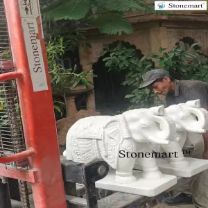 Just click the button to play the video above and observe the intricate details achieved by our murtikars upon the raw marble surface. All it took was the pair of chisel and hammer in the right pair of hands and every textural detail has been embossed upon the surface of these royal elephants alike the living ones themselves. Go for these elephant statues as per Vastu and welcome happiness, positivity, prestige and prosperity to your doorstep.