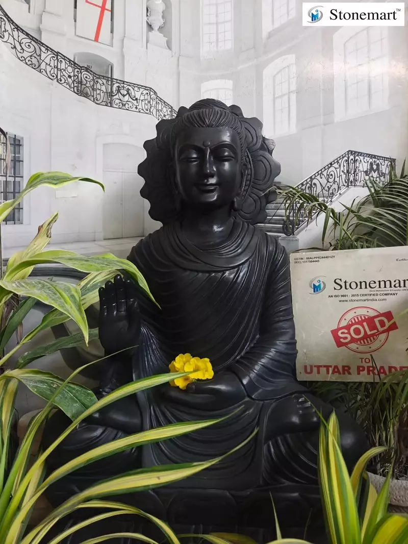 3 feet marble stone Buddha sculpture featured for you in abhaya mudra posture. Immediately bought by our client from Uttar Pradesh from Stonemart ™, once we released the details of this marble Buddha on our product page. The Buddha has been packed and sent for doorstep delivery to our client in UP through our exclusive shipment services without relying upon third parties. The complete texture of the Buddha oozes divinity in an overwhelming manner.