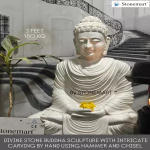 Art so pure, white marble stone Buddha sculpture for home and garden by Stonemart ™. Fully Handcarved 3 feet Meditating Buddha Sculpture with such intricate detailing that would make you fall in love with it at its very first glance. Order this beautiful divine Buddha sculpture from Stonemart ™.