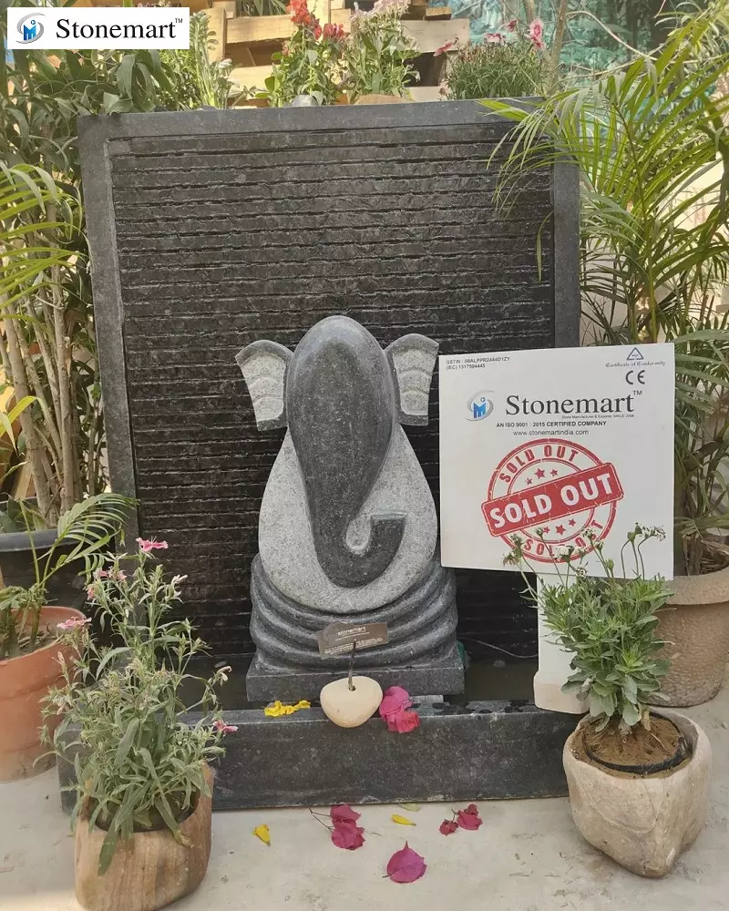 39 Inch Serene Granite Ganesha Fountain for home, garden, resort, farmhouse, villa, hospital, office reception, real estate society, rehabilitation centre, resort and cafe from Stonemart™