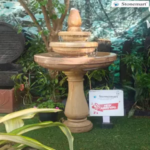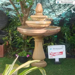 With Mesmerizing water sound, large size poolside, garden center and home entrance fountain out of beautiful rainbow stone by Stonemart ™. It's 52" over 4 feet, weight approx 120 kg cascading water fountain for landscaping, resorts, hotels and commercial establishments. Order today from Stonemart ™.