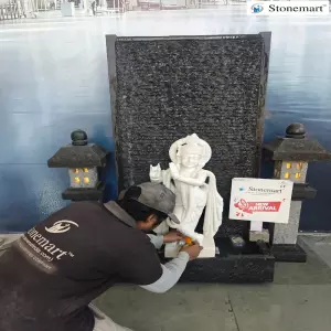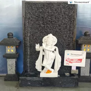 5 feet Granite waterfall with 2.5 feet white marble Krishna statue for your beautiful home, office or commercial establishments by Stonemart ™. Worshipping lord Krishna offers peace, positive vibes, compassion, removing negative energies, and enhancing spiritual growth. You can also consider adding the sculpture of Radha Ji to make the appearance even more divine. Order today the spiritual, divine Shree Krishna fountain from Stonemart ™.
