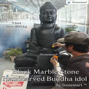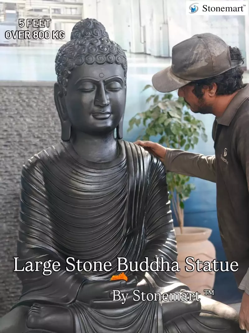WATCH IT LIVE 👇:Large Size Buddha statue out of black marble stone for home, garden, resort, farmhouse, commercial establishments, hotels, real estate society and commercial establishments by Stonemart ™. Size 5 feet weight over 800 kg, this serene Buddha sculpture is sure to bring positivity, serenity and tranquility to its surroundings.