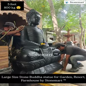 An ideal installation as a stone Buddha sculpture for garden, resort, real estate society, farmhouse, showroom and commercial/ business establishments by Stonemart ™. No need for any civil work at the time of installation and simply relocate the sculpture at your chosen spot with the help of crane or forklift and it will stay there for generations without affected by weather to bless everyone walking across the vicinity with peace, calmness and mental strength.