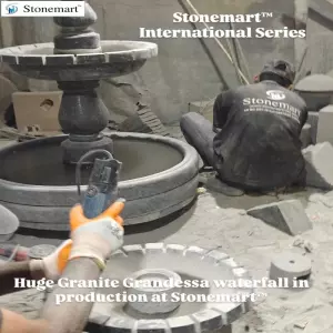 Under manufacturing...large size garden fountain featured with a weight approx a ton. Stunning in view, tactile granite grandessa waterfall in production for your big garden, farmhouse, event lawn, resort and even backyard space by Stonemart™. A masterpiece of international series...it is going to be a specimen of aristocracy, grandeur and royalty.
