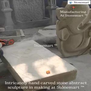 Check out the video shared by the team members of our export stone manufacturing company in India. Witness how single block stone products manufacturing is done to give our products the authenticity that they deserve. The block has been marked in advance for precision cutting by our artisans. Modern abstract Ganpati sculptures are among the widely popular spiritual decor range for international quality stone manufacturing in India.