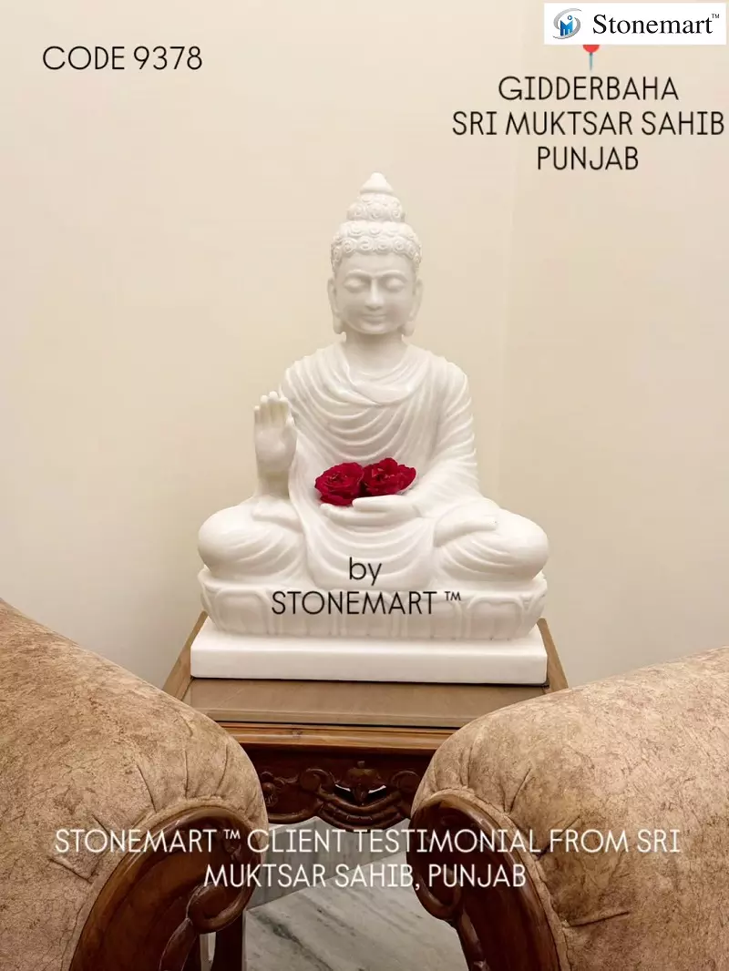 Check out this masterpiece here- https://stonemartindia.com/i-2-feet-divine-white-marble-buddha-statue-in-abhaya-mudra-9378
