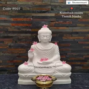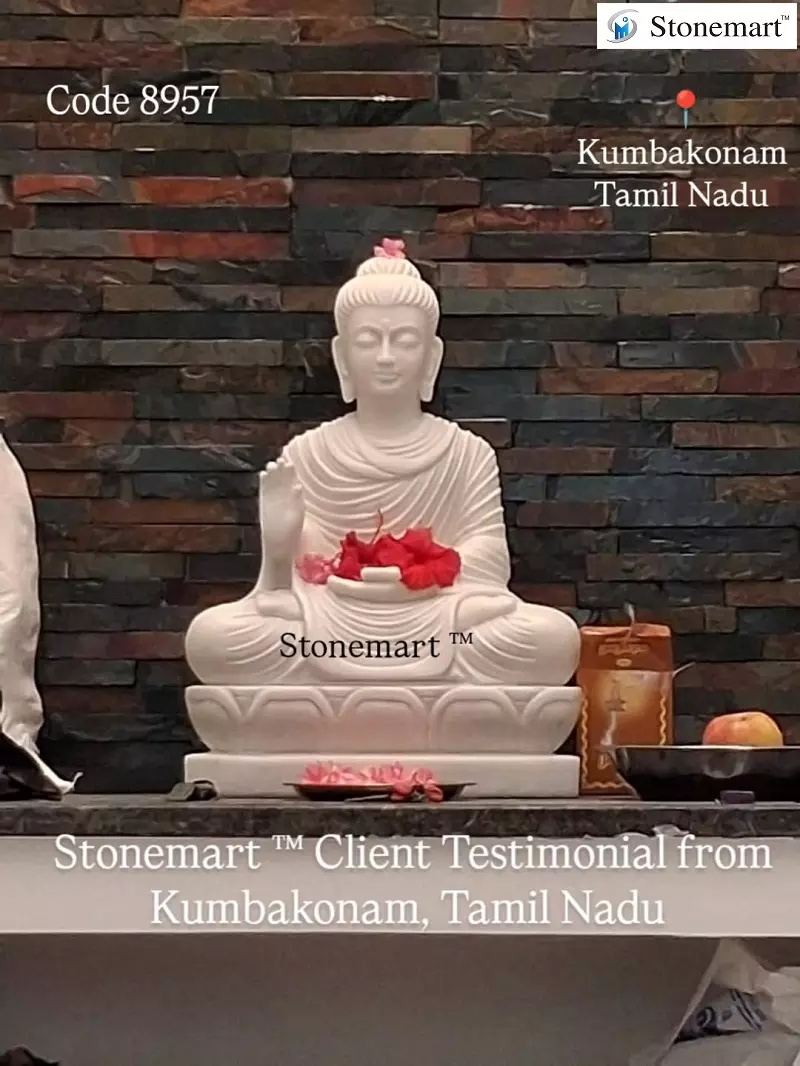 Don't forget to click the video shared by our client post installation and posted on this page above by our team exclusively for you. As you can see in the video, the spot chosen by our client is a beautiful one. The way our client has tilted the camera to show the immaculate ceiling work, gradually revealing the excellent wall cladding work to ultimately tilt the camera down to the 2ft white Buddha statue.