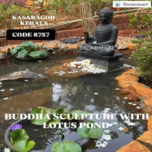 The ambiance that has been created surrounding the Buddha is highly admirable. The lilies are blooming across the water surface, reflecting the growth and prosperity achieved through a balanced and transparent mind. As you can see, our client has offered oil lamp, incense sticks and flowers as a mark of veneration to the Buddha.