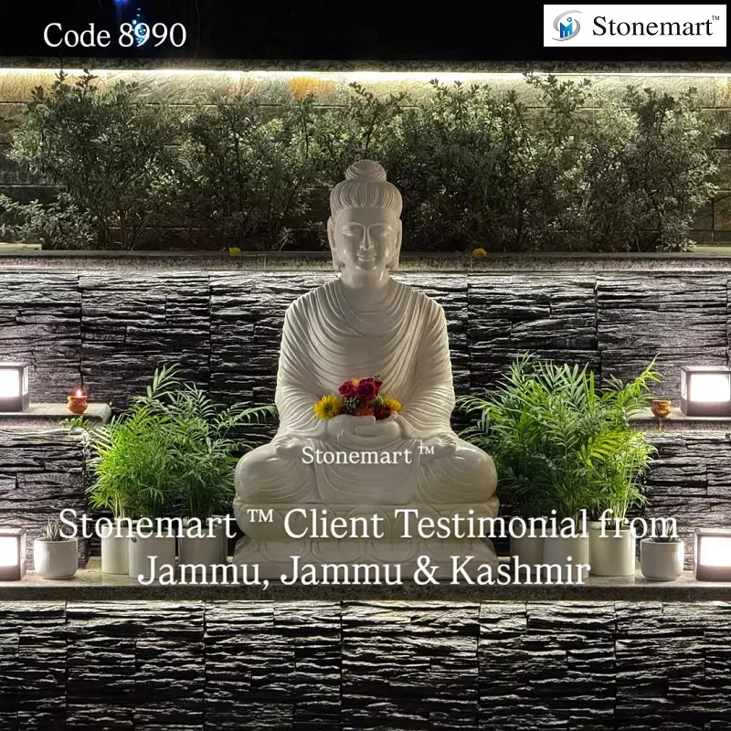 Just check out the video shared by our client above! The way our client has panned the camera to capture every detail. The greenery of the Nature, the perfect installation of lighting and the 3ft white marble Buddha sculpture as a focal point among them. It feels like the Eden of spirituality, doesn't it?