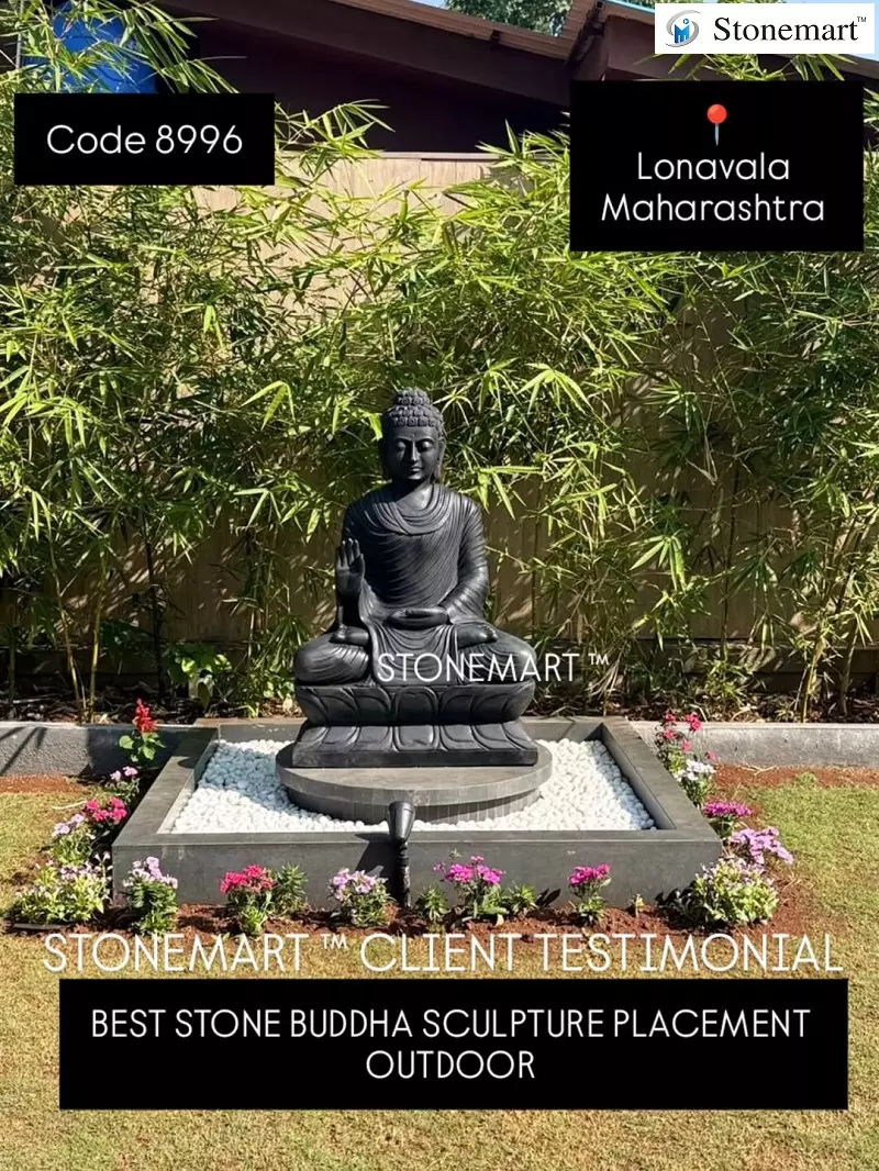 Stonemart ™ client testimonial for the 4 feet 500 kg (half a ton) stone Buddha sculpture installed after doorstep delivery in Lonavala, Maharashtra. The placement has been done by our client in garden, igniting the best garden Buddha placement ideas. If you are in the search for the best stone Buddha sculpture placement outdoor, then this is it. Just check out the video shared by our client straight from the installation area above.