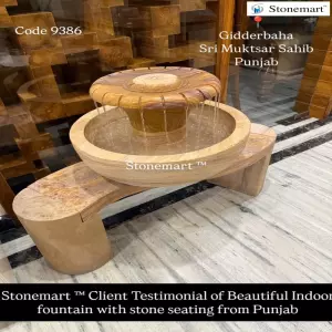 The placement of the water feature on the bench increases its height and visibility. Besides, there would be enough space on either side of the bench to comfortably sit and let the cascading water from the fountain tranquil our senses. One of the unique attributes of the water features and stone sittings made from natural rainbow sandstone is that they can transform in the texture color of the natural stone when the water passes over them.