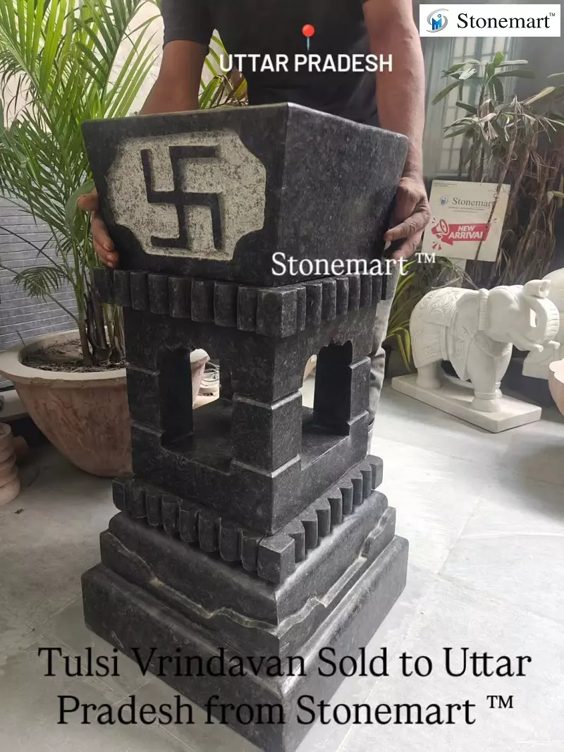 It is time to accentuate spirituality and positivity at your premises. Tulsi Vrindavan or Tulasi Kota did not last long in our stock and immediately placed on order by our client from Uttar Pradesh (UP) and has already been packed and dispatched for doorstep delivery to our client from Stonemart ™. It is 34" or approx 3 feet high, weighing 200 kg single block high quality granite.