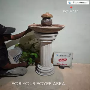 To order this small table fountain with stone pedestal for home interiors and exteriors or for further queries call/WhatsApp +91-9413348979 or mail info@stonemartindia.com