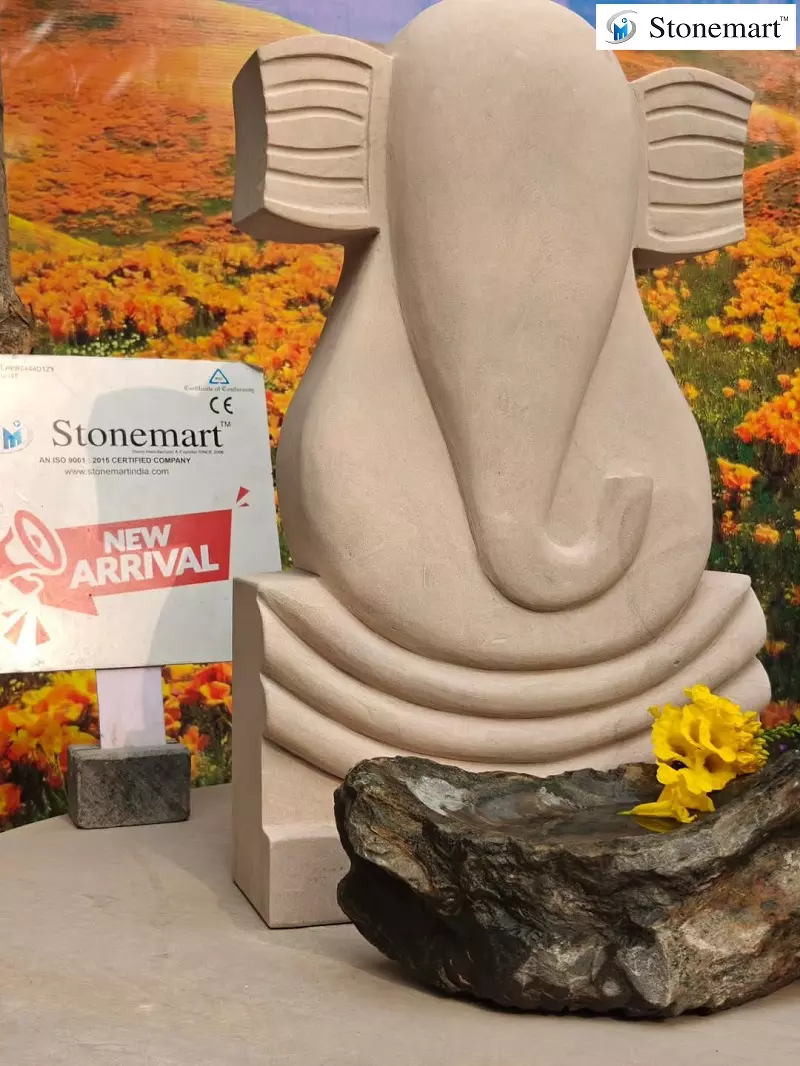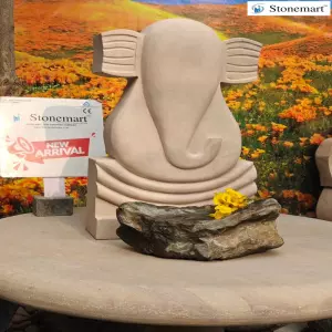 Stone converted to stunning modern Ganesha abstract sculpture to spread positivity, spirituality and beauty all around. Hand crafted out of single block export quality sandstone, it is best to buy for your outdoor garden and indoor too. Order today from Stonemart ™.