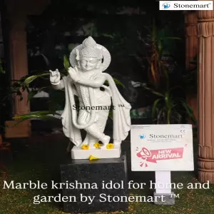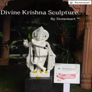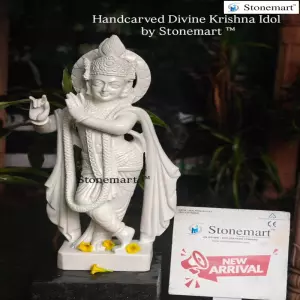 Order lord Krishna with granite pedestal for perfect contrast, height and visibility. Featuring intricate carving details imbibing various attributes of Bhagwan Shri Krishna. Handcarved stone Krishna sculpture for home by Stonemart ™. Witness the most beautiful and divine statue carved fully by hands of the most talented native Indian murtikars out of single block of white marble stone at Stonemart ™.