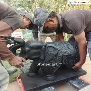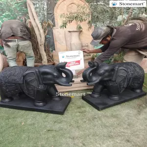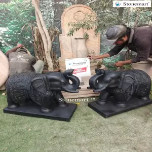 Majestic, symbolic and auspicious. Hand carved black marble stone elephant sculptures for home entrance and garden by Stonemart ™. The beautiful black marble stone elephant statue to make a bold statement. Fully hand carved, with intricate detailing, this splendid 2.5 feet black stone elephant pair is sure to give a feel of awesomeness like never before.