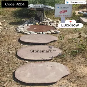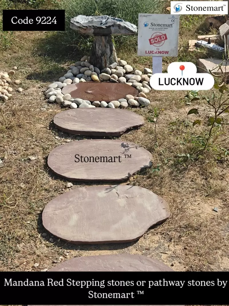 Mandana Red stepping stones or pathway stones that have been sold to our client in Lucknow, Uttar Pradesh along with birdbath fountain and pebbles from Stonemart ™. Perfect for placement at the front yard, backyard, garden, and even balcony and rooftop garden. The installation of natural stone slabs not only boost the aesthetics but also defines the pathway to prevent the tripping of both familiar and unfamiliar visitors. Make the pathway more dependable for the members with senior age group, children and even pets. Especially during the months of monsoon.