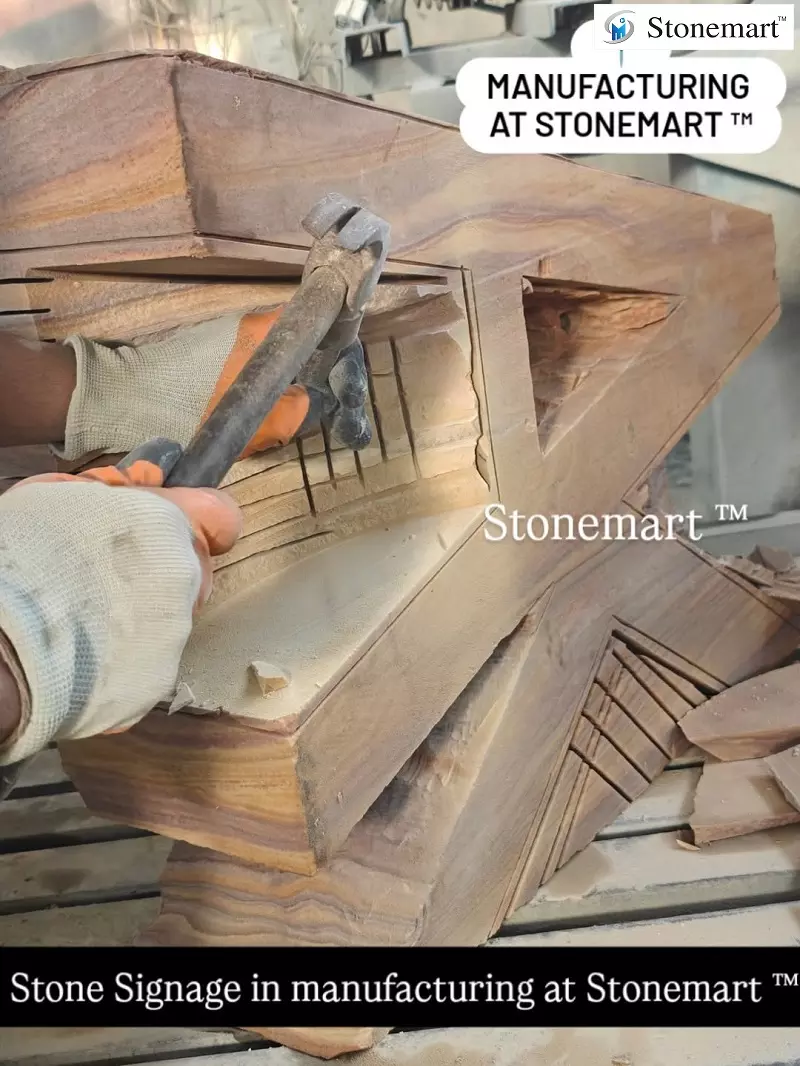 Don't forget to check out the 'behind the scene' video shared by our team exclusively for you! The name alphabet "AK" stone signage is currently in manufacturing for a company in Telangana at Stonemart ™. Soon you will witness the masterpiece in its final, single bock form. Order stone alphabets and stone block signages for your home, office, corporate organization, hotel, resort, farmhouse or even for the real estate society from Stonemart ™.