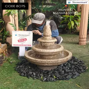 Here, we are bringing forth to you, a masterpiece for foyer area decor. Modern 3 tier cascading granite center water fountain for garden by Stonemart ™ sold to Mumbai, Maharashtra. Perfect for both outdoor garden and indoor, as there will be no spillage of the cascading water from the tiers to the outside. The pouring water will stay inside the largest urli at the base.