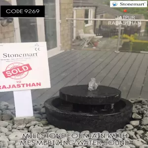 Sold to Jaipur, Rajasthan a beautiful Hand-carved granite MILLSTONE fountain for home and garden by Stonemart ™.