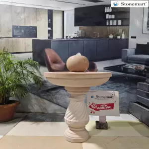 Stonemart ™ presents stunning modern indoor fountain for ultra modern interiors, commercial spaces and club houses. Just look at the video shared by our team post installation above. The uruli fountain cum birdbath includes a sphere like fountain mouth at the top, 20" granite urli base and intricately hand carved stone pedestal. The pedestal offers additional beauty, height and visibility.
