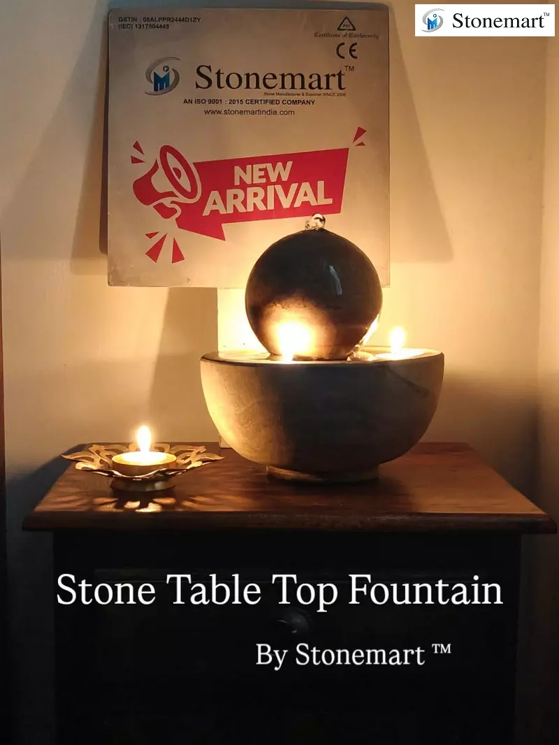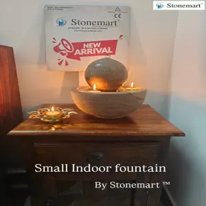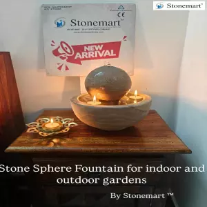 Modern indoor fountain specially manufactured for those looking for a small yet extraordinary water fountain imparting positive vibes. Natural sandstone sphere has been mounted upon sandstone urli to store the water and get circulated at the top via the center-top of the sphere. The unique texture of the rainbow sandstone transforms its color with the visibility of a real pristine texture when comes in contact with water.