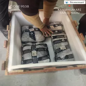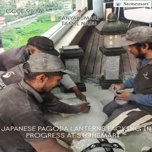 Japanese Pagoda lanterns for sizzling interiors and extraordinary exterior by Stonemart ™ sold to Kanyakumari, Tamil Nadu and packaging in progress before dispatch from Stonemart ™.