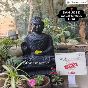 Marble Buddha idol being packed for export to San Jose, California, USA from Stonemart ™. 91 cm or 3 feet black marble stone Buddha statue being packed for dispatch from Stonemart ™. Export to San Jose, California, U.S.A, 91 CM 180 kg, with packaging 250 kg Lifesize Garden Buddha sculpture in Abhaya Mudra posture from Stonemart ™.
