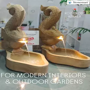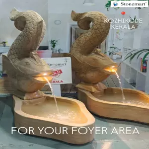 WATCH IT LIVE 👇:Fire your interiors with modern fountain out of stone by Stonemart ™. Fully Handcarved out of single block of teak sandstone that resembles wood by Stonemart ™. Sold to Kozhikode, kerala stone fish fountains from Stonemart ™.