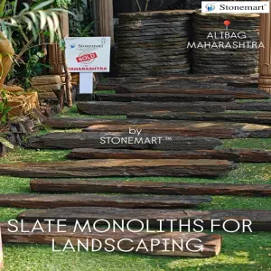 Modern landscaping to be accomplished with Slate Monoliths pathway. Already sold to our client from Alibagh (Alibaug), Maharashtra from Stonemart ™. The beautiful stone Monoliths that resemble wooden logs in terms of textural design to bestow a raw look to your garden pathway or yard walkway. Available in size 2,3 feet, perfect for landscaping designing of theme resorts, gardens and farmhouse.