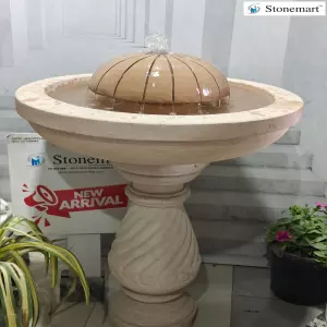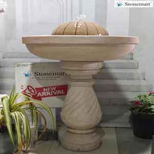 The water feature comes with a mushroom shaped top with umbrella shaped intricate edges from where the water dribble back into the base tank. The water features come with a submersible Indian standard pump that stays hidden and let the water flow to the top efficiently. The fountain comes with hand designed pedestal base, (as you can see in the images and videos above) offering unparalleled aesthetics, height and visibility.