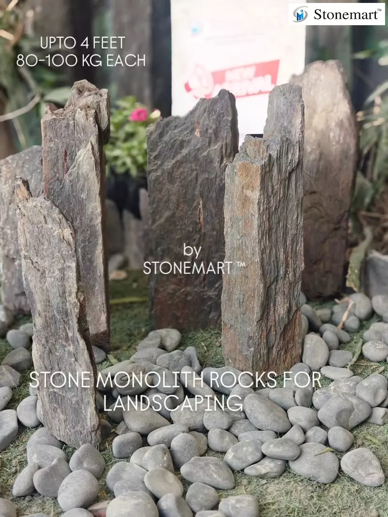 Stone Monolith Rocks for garden, landscaping, commercial establishments by Stonemart ™. Get lost in the beauty of beautiful slate stone Monolith Rocks for garden with height upto 4 feet. Make your own unique garden center attraction by incorporating these beautiful monoliths from Stonemart ™.