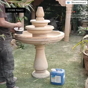 Waterproofing, a crucial part at Stonemart ™, mandatory for every sandstone product prior to packaging and dispatch from Stonemart ™ to our clients. This time it's for our 4 feet rainbow stone waterfall sold to Bengaluru, Karnataka from Stonemart ™.