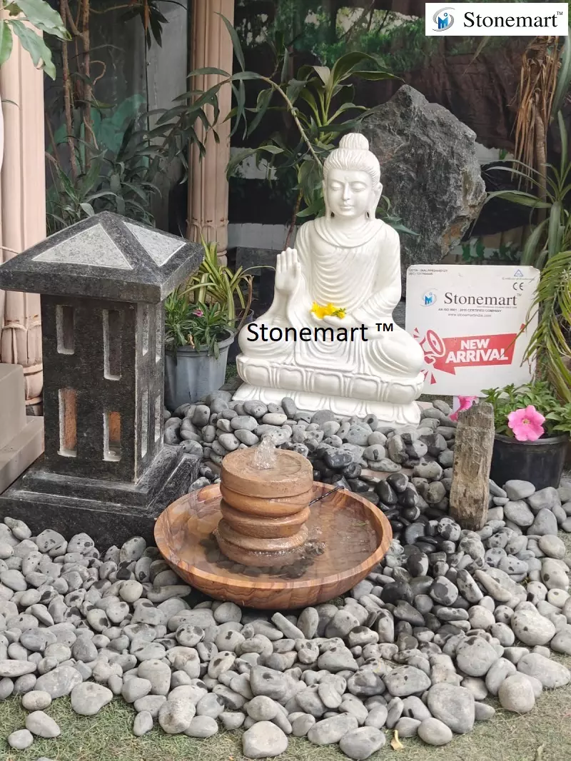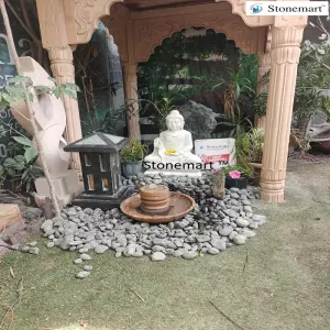 Zen garden Buddha sculpture for positive, serene and auspicious vibes in your Foyer Area by Stonemart ™. It is time to welcome home peace, tranquility and serenity by adding this beautiful white marble stone Buddha sculpture along with all elements of Zen. It is a sitting Buddha figurine in abhaya mudra symbolic to fearlessness, positivity and confidence in every aspect of life. Naturally heavy and not hollow, it boasts excellent durability of not just years or even decades, but ages.