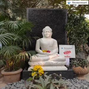 Shop large Size Outdoor Stone Buddha fountains in white marble, black marble and even sandstone. Carved by hands, the Buddha Fountains from Stonemart™ are preferred not just in India rather worldwide. During the tenure of over 16 years, Buddha stone fountains from Stonemart™ are ordered by almost every State or city in India, including Hyderabad, Telangana, Karnataka, Tamilnadu, Kerala, Maharashtra ( Mumbai, Pune, Nashik etc), Goa, Jammu and Kashmir, Uttar Pradesh ( Lucknow, Kanpur etc), Himachal Pradesh, Banagalore etc. Similarly, in terms of export, the Buddha Stone fountain manufacturing company in India has exported masterpieces to Dubai ( UAE), UK, Canada, Australia and USA. The best part with any of the waterfalls with Buddha idol is that they are carved by skilled murtikars of Stonemart™ and you can witness calm expressions in almost every stone idol of Gautam Buddha. Be it Abhaya Mudra, Anjali Mudra, Bhumisparsha Mudra, Dhyan Mudra, Vitarka Mudra or any mudra, you can expect all at Stonemart™ . Shop online Stone Buddha fountains in marble or sandstone and feel peaceful environment in your home, garden or farmhouse. Even if you need one Buddha fountain for your rehabilitation center or Spa or hotel or even resort, you can find the one in 3 feet, 4 feet, 5 feet or even 6 feet and above. Order now from the biggest collection of Stone Buddha fountains in India and create your own Zen garden.