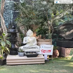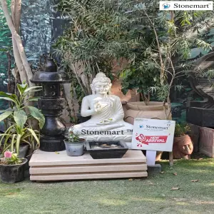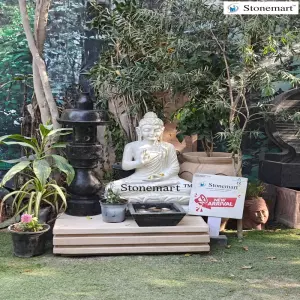 Carved out of single block of white marble stone, this Buddha statue is naturally heavy and not hollow. Making it ageless in terms of durability. Perfect for both indoor and outdoor garden with an option to have the complete setup too to turn your empty space into an extraordinary landscape.