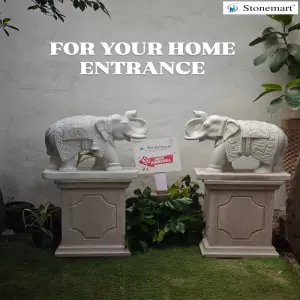 The status of elephant is revered in Indian culture for its immense strength, power, and loyalty, symbolizing a protective and noble figures. Placed at the entrance on pedestal, they act as guardians, protecting the home from negative energy and evil influences.