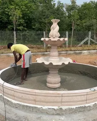 2 tier grandessa fountain successfully door delivered and installed at the space of the client in Tamil Nadu by Stonemart™. If you wish to feel the aura of grandeur... oozing aristocracy and royalty, then this is it! The fountain comes with a sculpture of fish at the top with two open shell like tiers to channelise the flow of water to the base.
