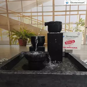 A prestigious brand for nearly two decades, we manufacture and export our own products and publish authentic videos and images. Unlike other less reliable websites, we never endorse publication of stock images and other tricks. A never before choice for exclusive homes, bunglows, mansions, balcony, exotic garden, terrace, backyard, office receptions, resort, luxury villas, restaurants, farmhouse, hotel, clubs, public parks, academic and research institutions, hospitals, rehabilitation centre, and for various other types of newly built or renovated commercial establishments. Just install this pitcher shaped granite 3 tier fountain directly with no role of any civil work such as digging or drilling at any stage whatsoever.