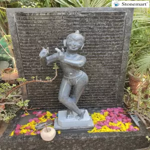 Let's have a look at properties of this black marble Krishna and granite fountain for indoors and outdoors-