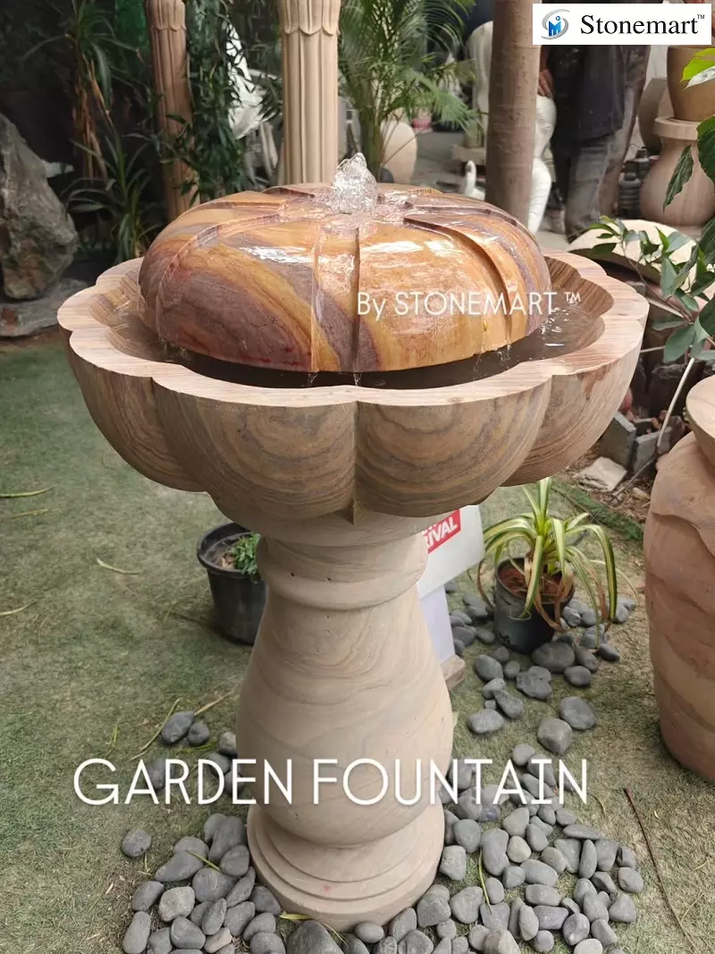 The true rainbow colors of nature and blissful water sound prove this water feature a perfect therapy for you. Just look at the video shared by our team above exclusively for you to watch? Apart from the stylish fountain mouth, hand carved lotus petal design uruli and modestly hand crafted pedestal, what else can you note? Can you observe the sublime color transformation at the fountain top in comparison to the fountain base? That is what you will get with our fountain made from premium quality rainbow sandstone. The complete transformation of color when the water comes in contact with this unique fountain surface.
