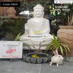 3 feet abhaya mudra white marble Buddha sculpture for indoor and outdoor Vastu to bring-in home peace, happiness and serenity from your favorite stone Buddha sculptures manufacturer and exporter at Stonemart ™
