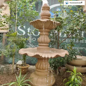 5 feet high stone grandessa water fountain- The easiest way to fill your exterior and interior space with grandeur and royalty. This two tier grandessa water fountain is richly hand carved from top to bottom with floral patterns carrying miniscule amount of details. This is a sumptuous fountain exclusively meant for large bungalows, luxury villas, mansions and elite commercial properties with a planned architecture. This huge 2 tier fountain streams the water from a considerable height to create a riveting atmosphere. Extremely photogenic and instant spotlight seeker, the presence of this big grandessa fountain is meant to make your property earn the most coveted discussions across the social circles.